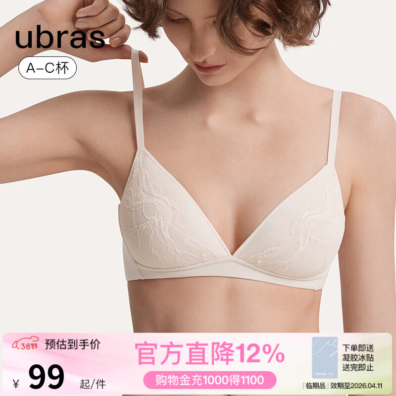 旗舰店ubras轻奢流雾蕾丝性感内衣女透气轻奢大胸显小聚拢文胸 小胸空气杯-燕麦奶色 M (75A/B/C)
