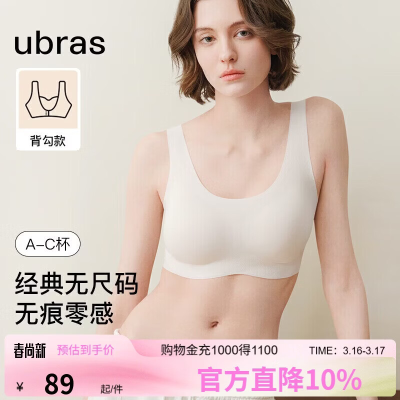 自营ubras无尺码内衣女无痕隐形抗菌无钢圈文胸罩燕麦奶色常规版背勾款