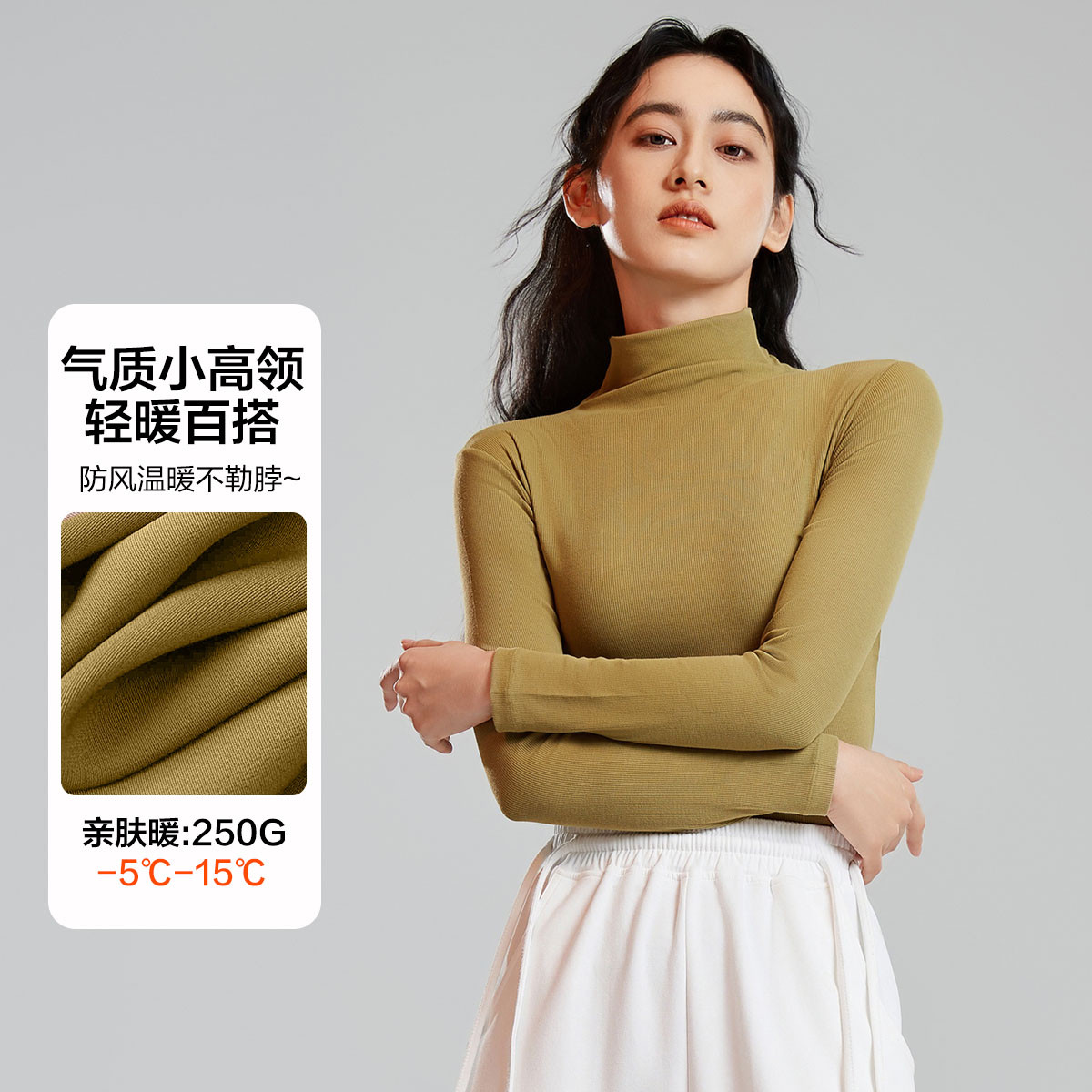 有棵树 【堆堆领】春夏亲肤修身打底上衣女士百搭长袖T恤高级感打底衫