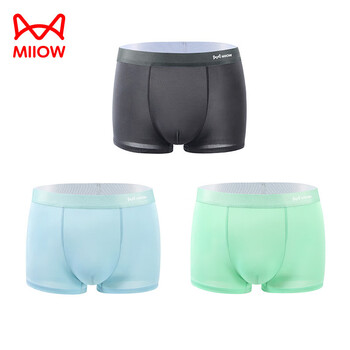 猫人内裤男士3条装冰丝抑菌裆大网眼透气四角短裤头 纯色款/深灰+浅蓝+浅绿 XXXL(适合体重141-160斤)