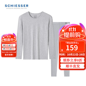 旗舰店舒雅(SCHIESSER)男士舒美棉3A抗菌圆领长袖长裤保暖秋衣秋裤套装23918W 花灰 L【70-80公斤】