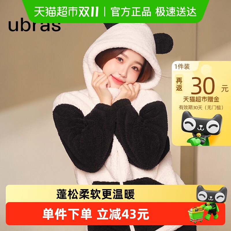 【虞书欣同款】ubras贴贴系列|熊绒绒家居服珊瑚绒情侣冬季睡衣厚