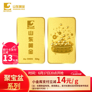 自营山东黄金聚宝盆Au9999 投资黄金金条50g 生日送女友 生日礼物 支持回购