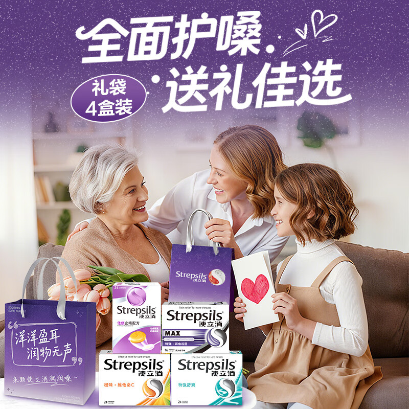 自营使立消Strepsils润喉糖化痰止咳含片4盒装礼袋 教师节老师礼物喉咙痛干咳嗽护嗓子疼痛痒咽喉炎送礼送家人