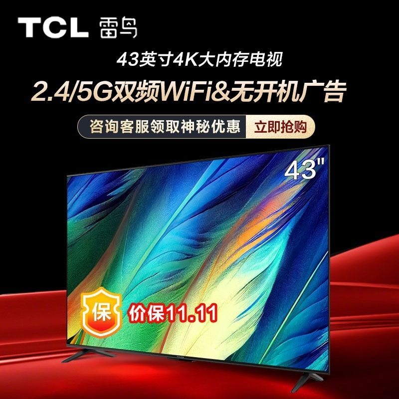 百亿补贴FFALCON雷鸟 43雀系 43英寸超高清大内存语音声控电视 265升级版