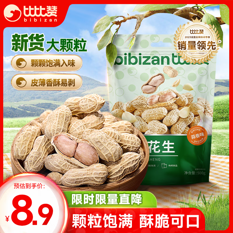 自营比比赞龙岩花生蒜香味500g袋装 每日坚果炒货带壳干果小吃休闲零食品
