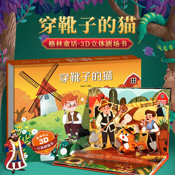 旗舰店格林童话3D立体剧场书 0-3-6岁儿童睡前故事书安徒生丑小鸭白雪公主小红帽幼儿绘本早教益智翻翻书 穿靴子的猫