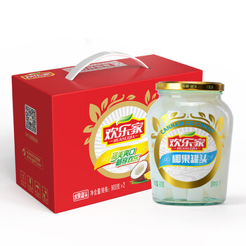 自营欢乐家椰果罐头900g*2瓶 糖水水果罐头 礼盒送礼整箱装 休闲零食