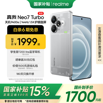 旗舰店真我真我Neo7 Turbo 天玑9400e 超薄续航大电池护眼直屏 智能游戏AI性能手机 透明灰 12GB+256GB