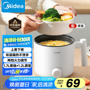 自营美的(Midea)电煮锅 宿舍小电锅 电蒸锅 学生寝室一体泡面小火锅 多功能锅 XZE1613 1.7L 配蒸笼【国家补贴】