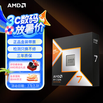 自营AMD 锐龙7 9800X3D游戏处理器8核16线程104MB游戏缓存加速频率至高5.2GHz盒装CPU畅玩CSGO 千帧电竞
