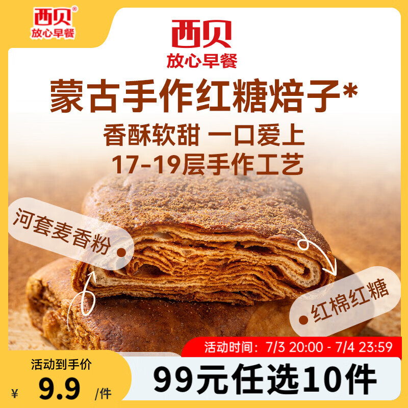 旗舰店西贝莜面村【99元10件】牛肉馅饼包子纸皮烧麦黄馍馍玉米羹贝果卷饼儿童早餐 【新品】红糖焙子120g(1个)
