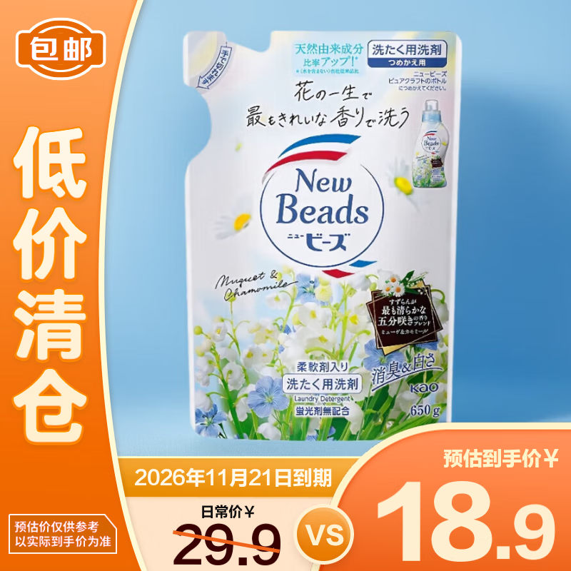 花王(KAO)New Beads系列铃兰香洗衣液袋装650g【临期清仓】