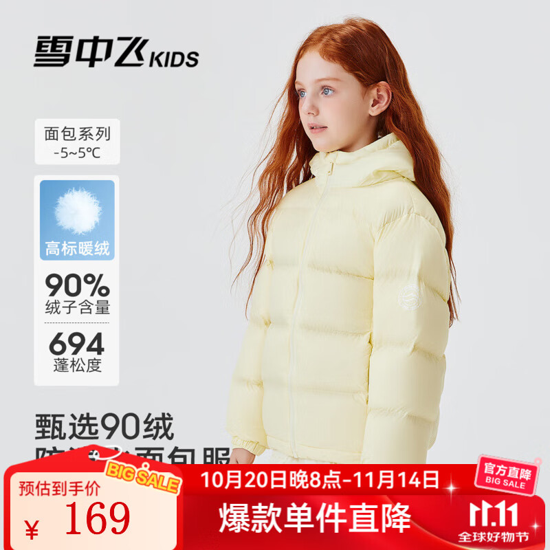 旗舰店雪中飞儿童羽绒服男女童装新款秋冬季加厚保暖外套百搭面包服 新嫩黄 160