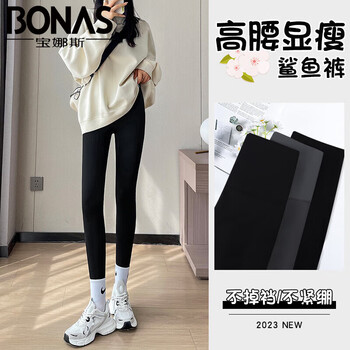 旗舰店宝娜斯(BONAS)无痕鲨鱼裤女打底裤四季高腰可外穿高弹提臀骑行瑜伽裤 黑色-四季款 1条 L (适合105-130斤)
