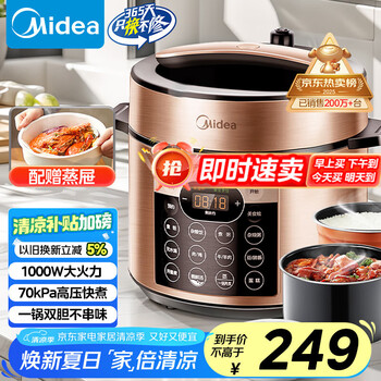 自营美的(Midea)提鲜系列电压力锅5L双胆家用高压电饭锅 全自动智能预约煲汤开盖煮小米粥YL50Q3-451电饭煲4-6人