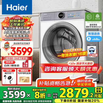 旗舰店海尔(Haier)全自动滚筒洗衣机 10公斤家用洗烘一体机 初色系列MAX29S 一级能效省电省水 以旧换新 国家补贴20%