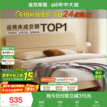 自营全友家居 现代简约双人大床家用主卧室床家具1.5米x2米高脚床板式床
