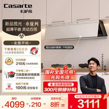 自营卡萨帝(Casarte)小炫风油烟机 盐白色超薄平嵌 揽光抽油烟机侧吸 28风量1200Pa静压 国家补贴20% 星悦烟灶联动Y5