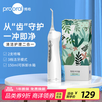 旗舰店博皓(prooral)冲牙器家用便携式洗牙器牙齿冲洗器水牙线正畸专用电动洁牙器牙垢去除器预防牙结石 5002 琉璃蓝