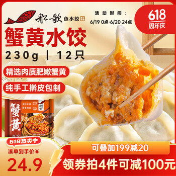 自营船歌鱼水饺 蟹黄水饺230g/袋 12只 健康早餐夜宵 海鲜手工速冻饺子 生鲜速食