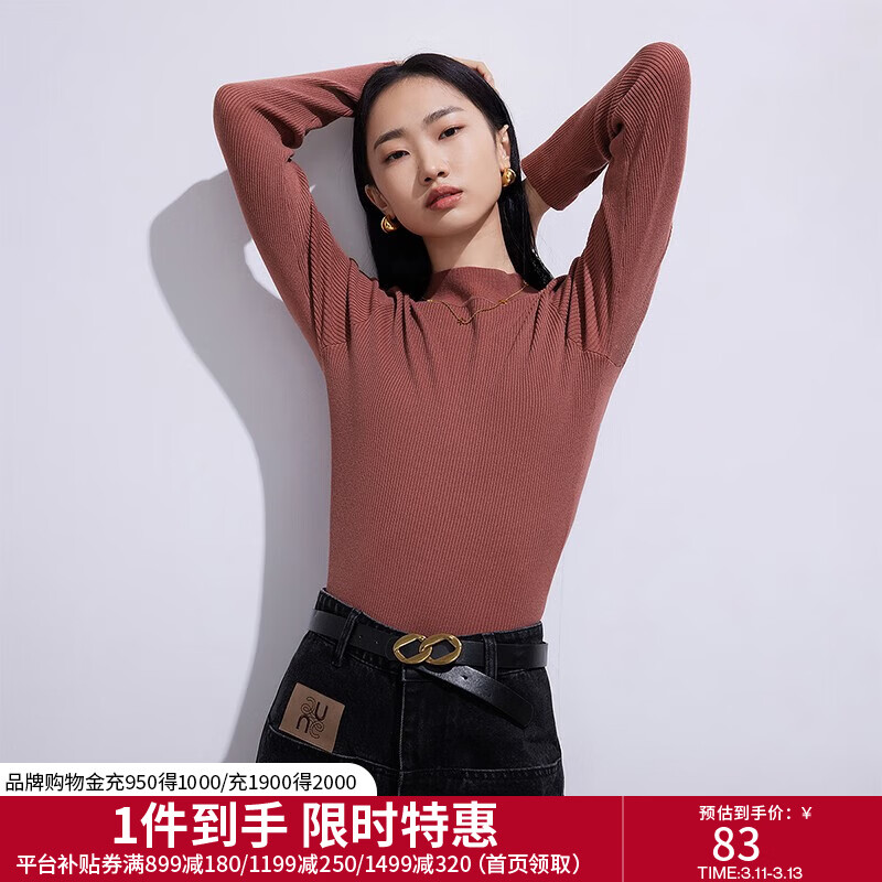 旗舰店初语半高领针织打底衫女2023年秋季新款纯色弹力显瘦上衣外穿内搭 棕色半高领 S