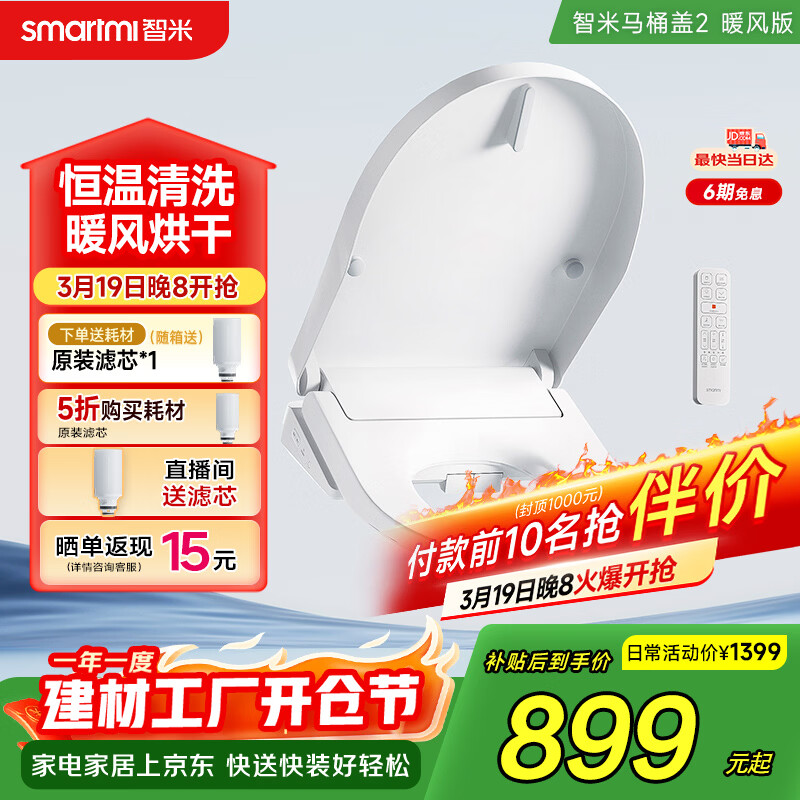 自营智米智能马桶盖加热抗菌电动马桶圈全自动坐便2暖风