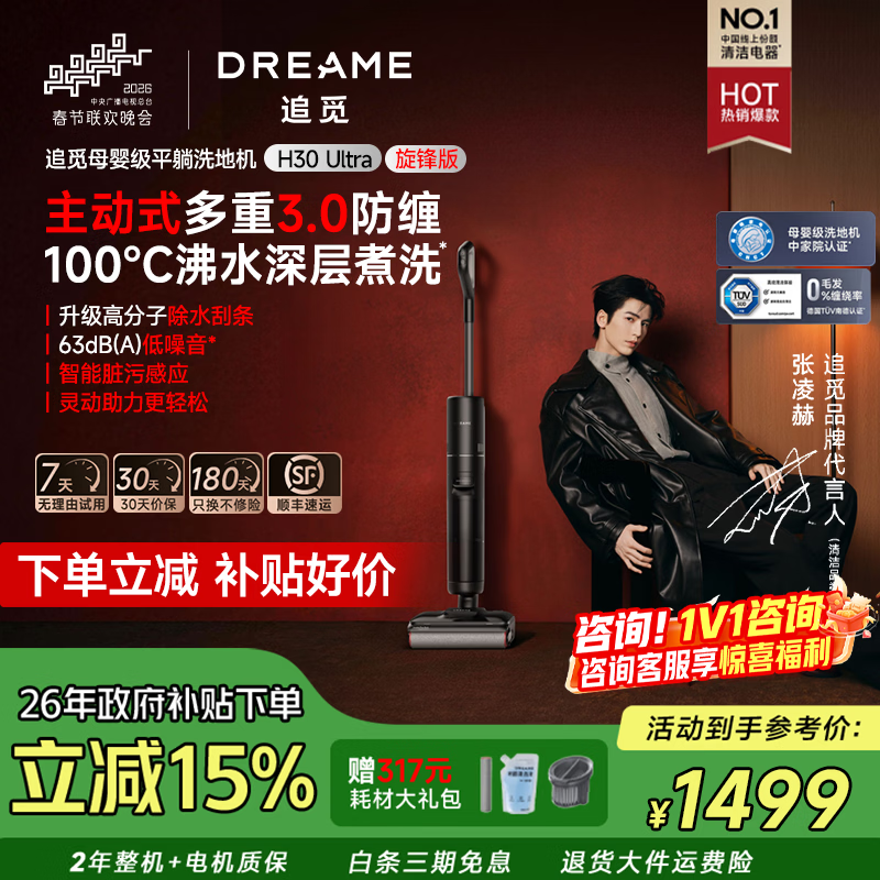 百亿补贴追觅【张凌赫推荐洗地机】H30Ultra旋锋版平躺0缠毛家用热水H20Ultra高温速干吸拖洗烘一体扫地机吸尘 H30 Ultra旋锋版 【超薄平躺爆款】