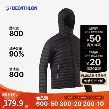 旗舰店迪卡侬(DECATHLON)短款羽绒服轻薄薄外套户外运动保暖内胆排骨羽绒服TREK100 男款- 经典黑-连帽 L