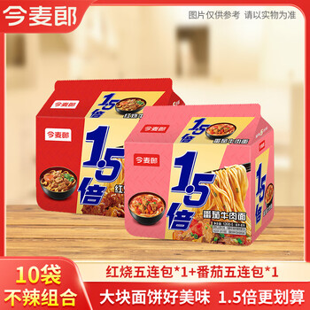 旗舰店今麦郎1.5倍大今野方便面大份量红烧牛肉面多口味泡面速食 【10袋组合】红烧+番茄