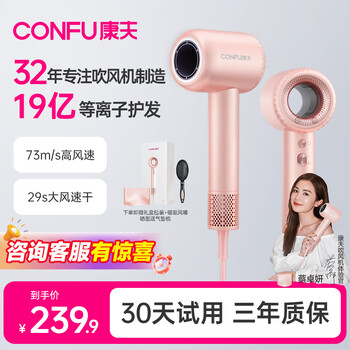 旗舰店康夫(CONFU)高速电吹风机中空无叶生日新年520情人节礼物送女友礼物大功率大风力等离子护发吹风筒KF-F9 【11万转等离子】+中空粉色