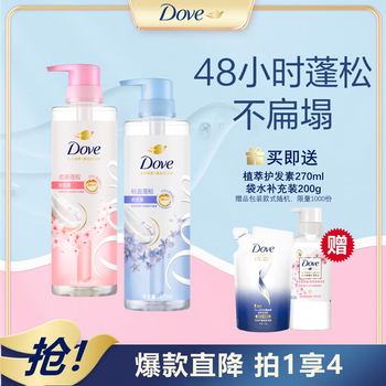 自营多芬(Dove)无硅油柔顺蓬松氨基酸洗发水470mlx2樱花+蓝风铃 送护发素270ml
