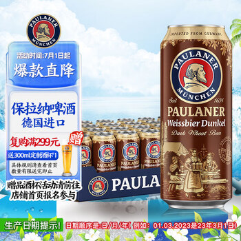 自营保拉纳(Paulaner)柏龙 小麦浓色(黑)啤酒 500ml*24听 德国进口 苏超 看球