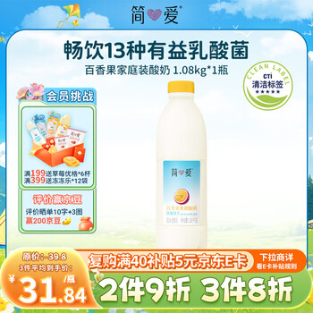 自营简爱百香果 酸奶1.08kg*1瓶 家庭分享装低温酸奶 风味发酵乳