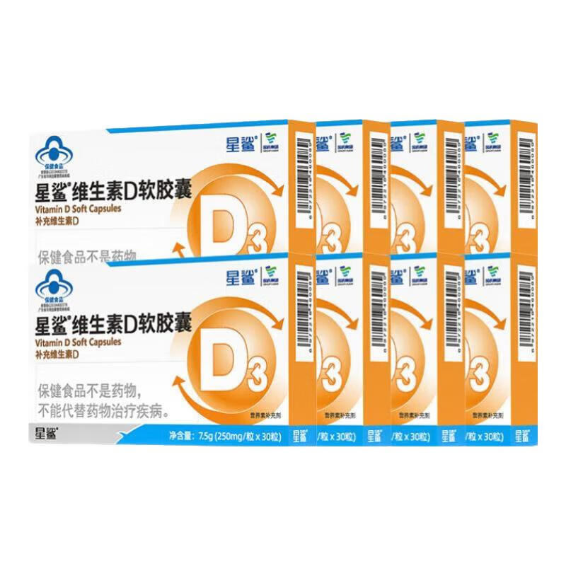 旗舰店星鲨维生素D3软胶囊d3滴剂儿童成人补充营养 30粒360iu*8盒
