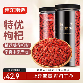 自营京东京造 特优级红枸杞子500g 新货宁夏中宁头茬免洗枸杞茶拒绝硫熏