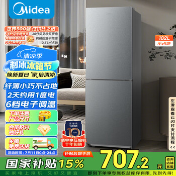 自营美的(Midea)182升双开门两门小户型家用客厅租房宿舍冰箱可冷藏冷冻小巧不占地低音运行BCD-182M【国家补贴】