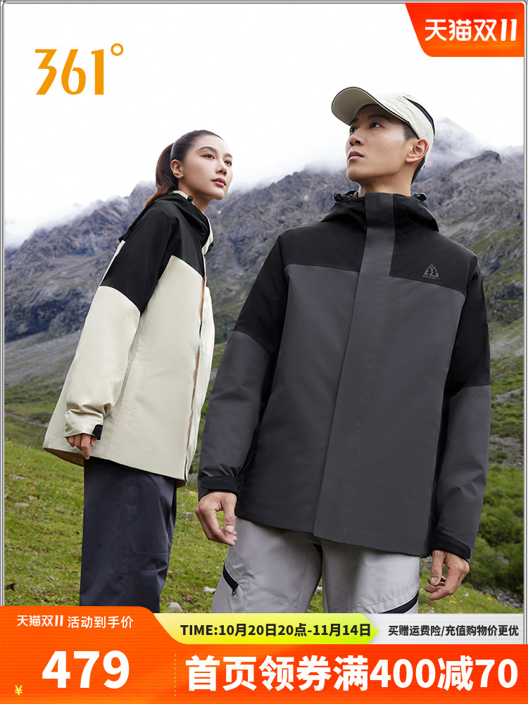 361山河衣pro冲锋衣男秋冬三合一可拆卸羽绒防水外套女652443308