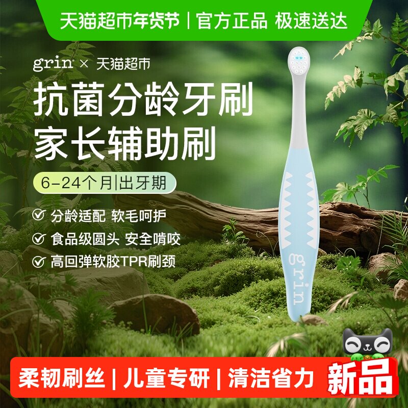 grin儿童牙刷婴幼儿宝宝专用护理软毛抗菌牙刷口腔清洁0-2-4岁