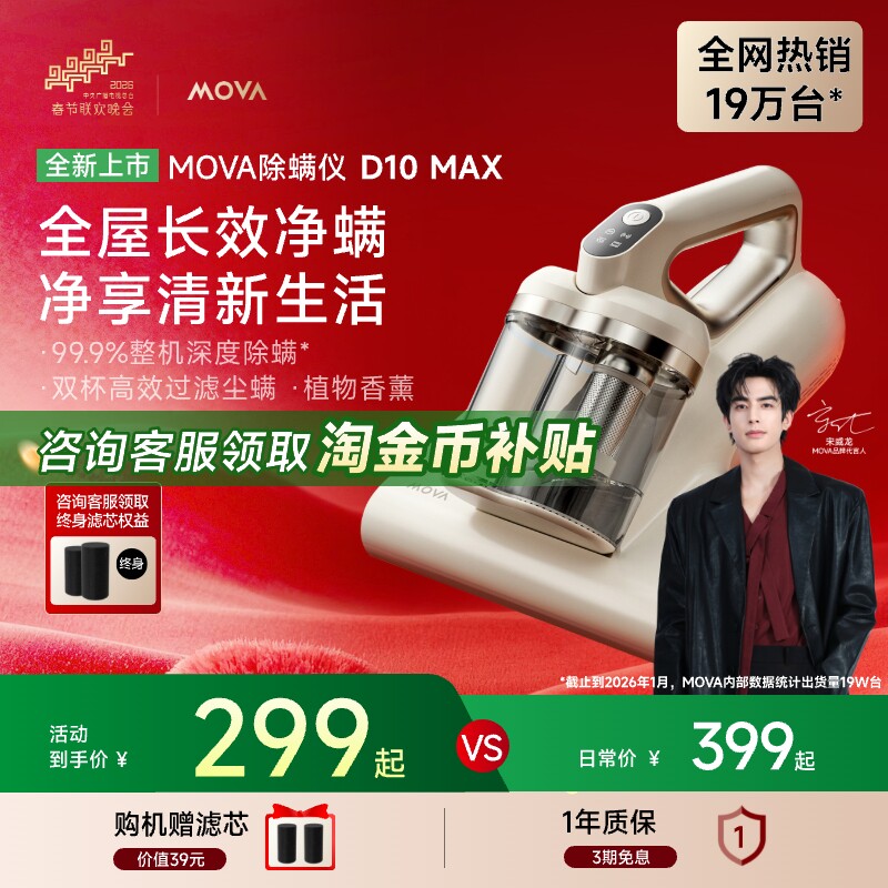 【李佳琦直播】MOVA除螨仪D10MAX增强版家用床上大吸力宠物紫外线
