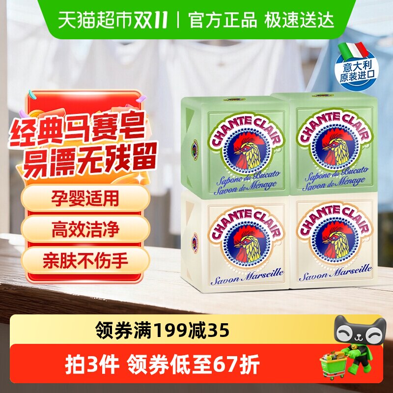 【下拉更优惠】进口大公鸡强力去污马赛皂婴儿衣物内衣裤300g*4块