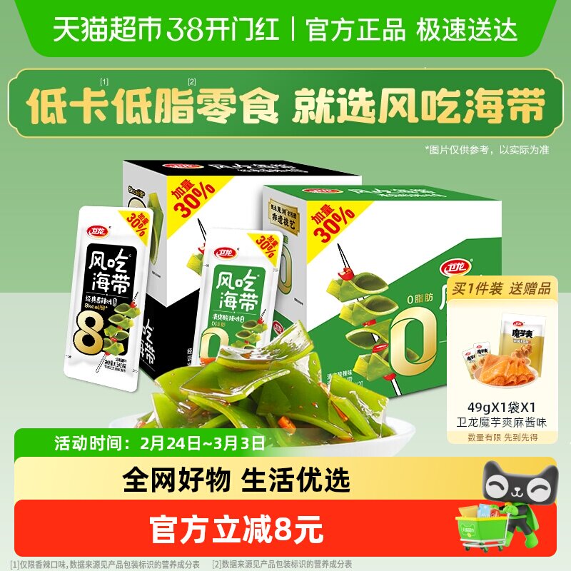 加量不加价卫龙风吃海带香辣酸辣味休闲零食品低脂低卡解馋下饭菜