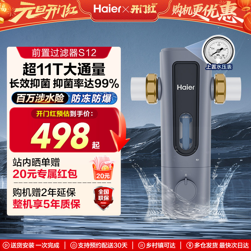 旗舰店海尔前置过滤器水龙头通用冲洗清洗自来水净水器家用防爆新款S12