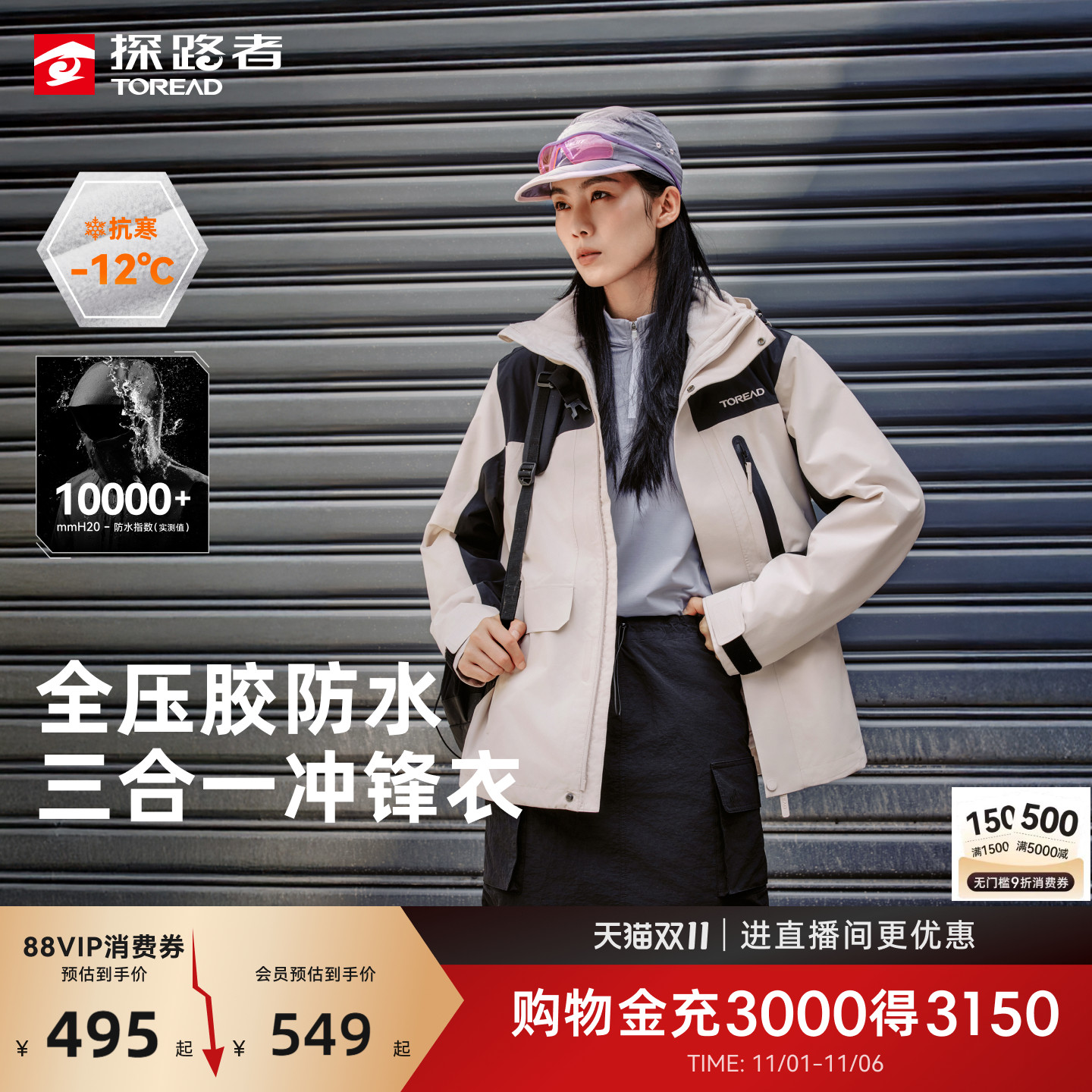 旗舰店探路者冲锋衣男新款户外三合一登山徒步防水防风保暖可拆卸外套女