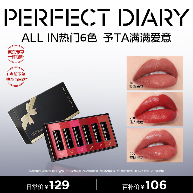 自营完美日记倾色慕光唇膏迷你礼盒6支装礼盒六色口红小支装生日礼物送女友