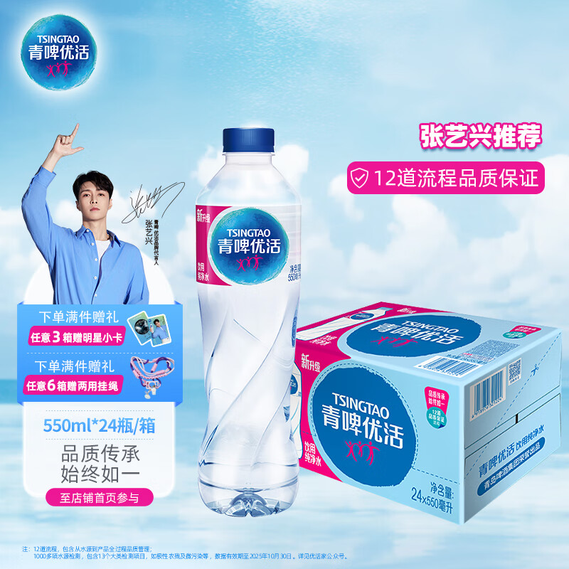 自营青啤优活纯净水550ml*24瓶饮用水整箱装 张艺兴代言【热门商品】