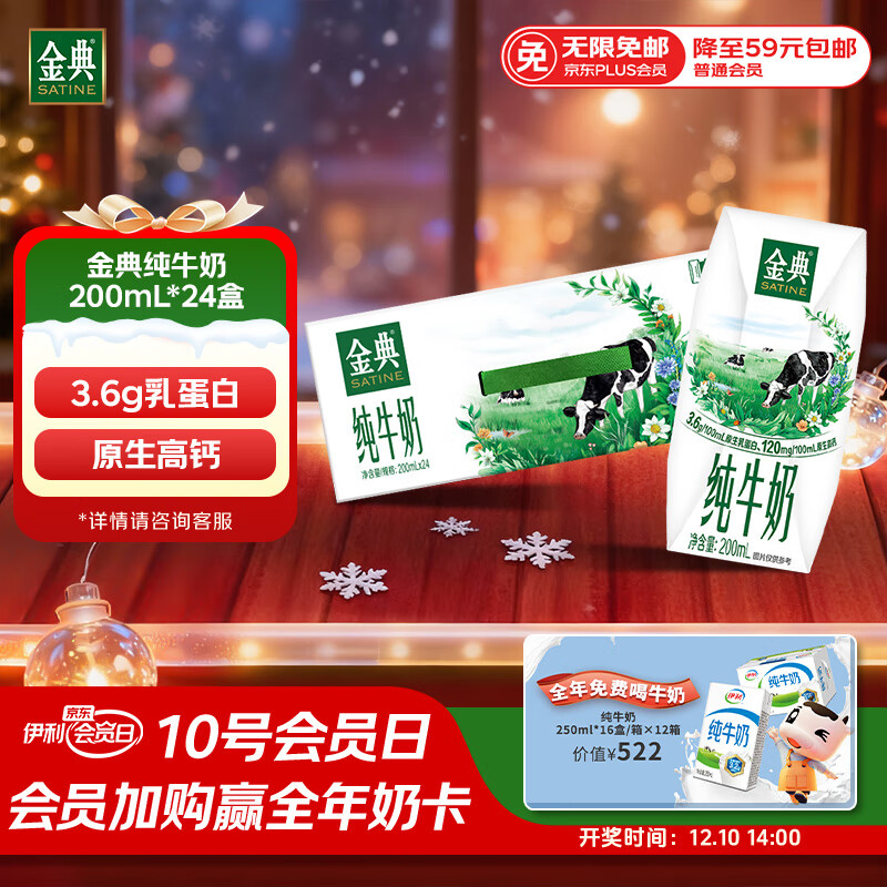 自营伊利金典纯牛奶整箱 200ml*24盒 3.6g乳蛋白 原生高钙 礼盒装
