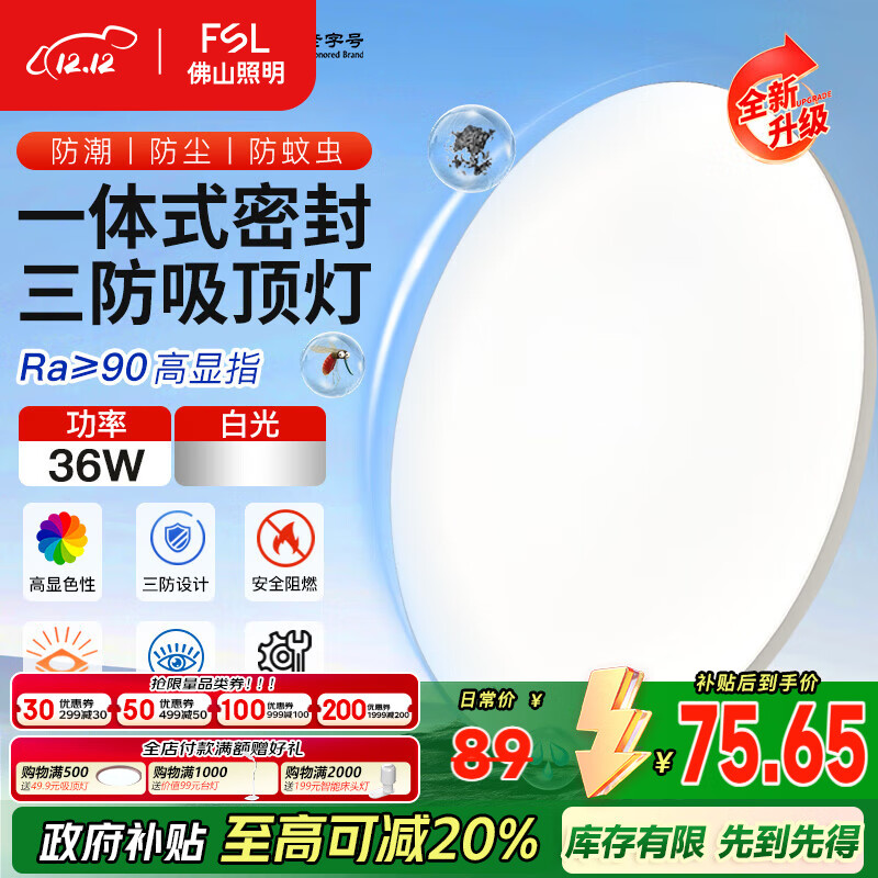 自营FSL佛山照明客厅吸顶灯简约现代圆形书房LED照明灯36W白光