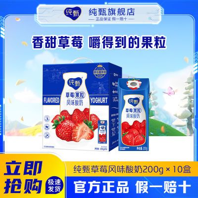 百亿补贴【4月】纯甄草莓蓝莓风味酸奶200g×10包0脂肪酸奶整箱批发