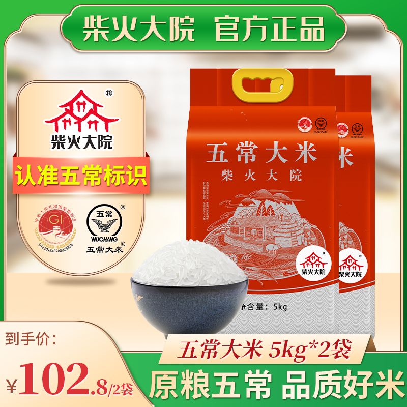 百亿补贴柴火大院 五常大米5kg*2袋组合 东北黑龙江五常大米香米